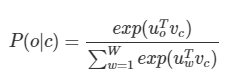 하지만 여기서 문제는 P(wt+j | wt ; ceta)를 구하는 방법을 알아야 한다는 사실입니다. 아래의 내용은 ratsgo's의 블로그에서 설명 한 내용이 나와있습니다.