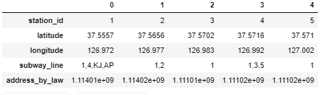 - subway.csv : 서울/부산 지역의 지하철에 대한 정보