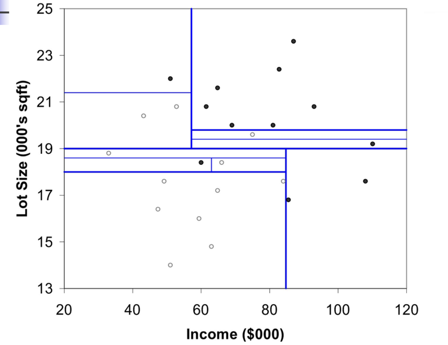 이진분류를 사용하여 discrete target variable(Classification Tree)와 continuous target variable(Regression Tree)를 예측하는것을 의미합니다.
