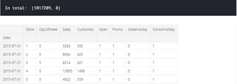 sales = df[df.Store == 1].loc[:, ['Date', 'Sales']]