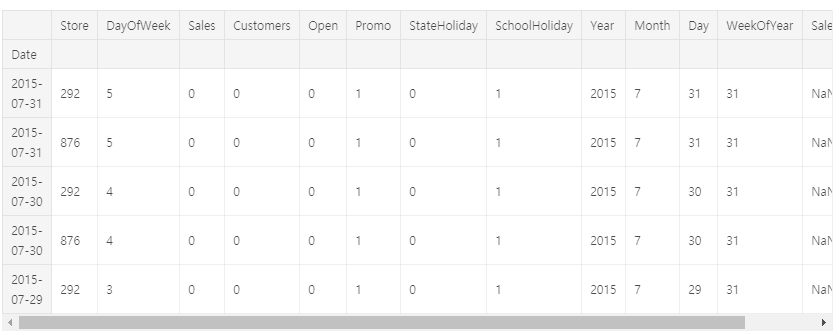 - Schoolholiday : 공립학교의 방학에 의해서 상점이 특정 날짜에 닫혔는지를 암시합니다.