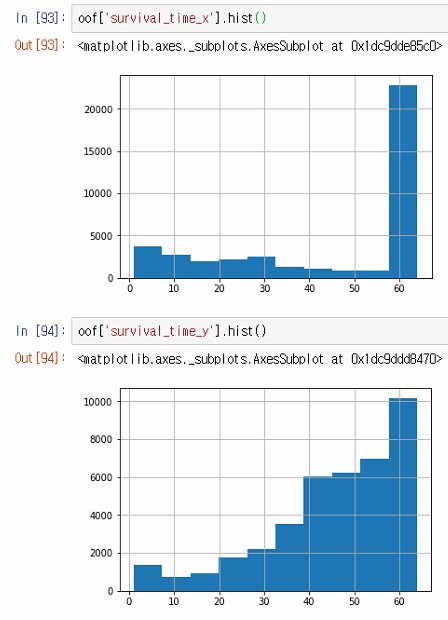 문제1. survival_time이 1인데 40이상으로 예측한 값이 매우 많음.