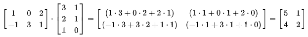 행렬의 곱셈의 경우 두개의 행렬의 크기가 달라도 곱셈을 할 수 있습니다. 하지만 주의해야 할 점은 앞 행렬의 열벡터의 수와 뒷 행렬의 행벡터의 크기가 같아야 하는 점입니다. 예를 들어, 아래의 경우 (2, 3) (3, 2)으로 3으로 크기가 동일합니다. 참고로 행렬의 곱셈 결과의 크기는 앞행렬의 행과 뒷 행렬의 열과 같습니다. (2, 2)는 (2, 3)에서의 행인 2와 (3, 2)에서의 열인 2으로 이루어져 있습니다.