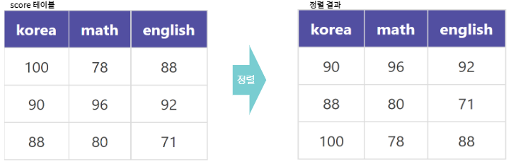 ORDER BY는 데이터를 정렬하여 검색하는 명령어입니다. 예를 들어, 성적을 저장하는 score 테이블에서 수학 점수가 높은 순서대로 정렬하여 검색할 때 사용할 수 있습니다.