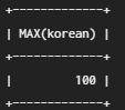 문제 : 이번 국어시험은 아주 어려웠습니다 그래서 엘리스는 100점을 맞은 친구가 없을 거라 생각했습니다. 그 생각이 맞았는지 확인하기 위해 국어시험에서 가장 높은 점수가 몇 점이었는지 조회해 봅시다. select문에 max함수를 이용해 조회하면 됩니다.