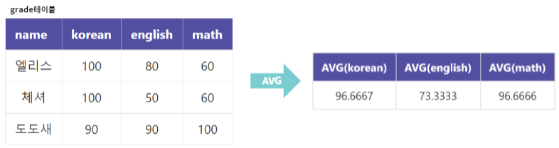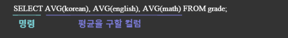 기본 문법으로는 SELECT AVG(korean), AVG(english), AVG(math) FROM 테이블입니다.