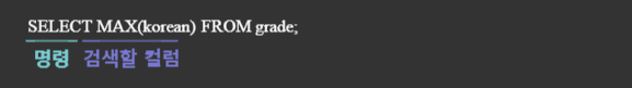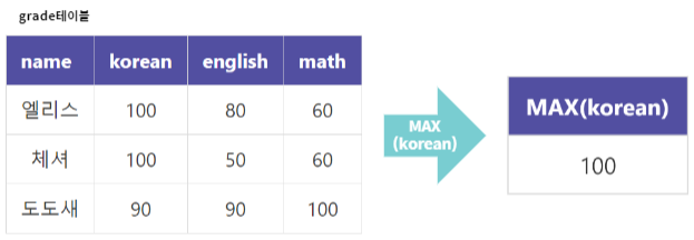 MAX은 컬럼의 최댓값을 구하는 함수입니다. 예를 들어, grade 테이블에 저장된 국어 점수 중에서 가장 높은 점수가 몇 점인지 조회해볼 때 사용할 수 있습니다.