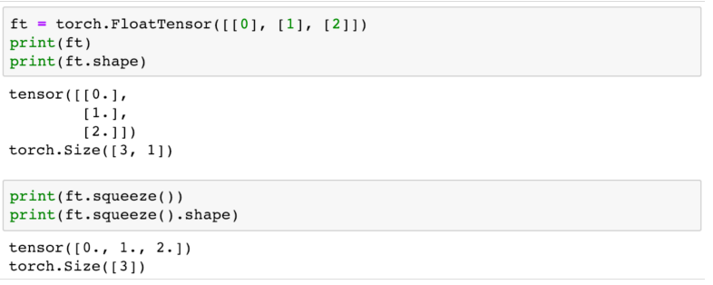 - view 함수를 사용한 것과 비슷하지만 Squeeze는 dim의 Element의 갯수가 1인 경우를 없애줌