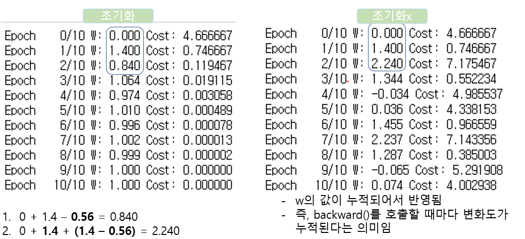 Q1. Epoch 마다 왜 zero로 초기화를 해주어야 할까?