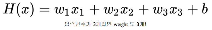 마찬가지로 가설 함수도 그에 맞게 여러개의 변수를 가지게 됩니다.
