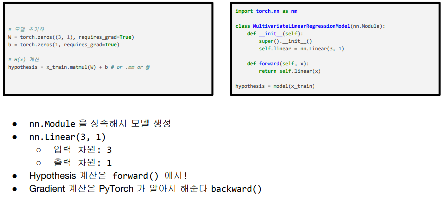 파이토치에서는 nn.Module이라는 패키지를 제공해서 모델을 쉽게 만들게 도움을 줍니다.