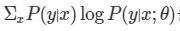 Cross Entropy는 두개의 확률분포가 주어졌을 때, 둘이 얼마나 비슷한지를 나타내는 수치라고 할 수 있습니다. ratsgo님의 블로그에서는 손실 함수로 음의 로그우도를 사용하는 이유를 확률론적인 접근과 정보이론적인 접근으로 나누고, 확률론적인 접근에서는 "최대 우도 추정"을 위해서입니다. 최대 우도 추정의 관점에서는 로그를 씌어도 argmax의 결과는 바뀌지 않고 아래의 식을 최대로 하는 세타만을 계산하게 됩니다.