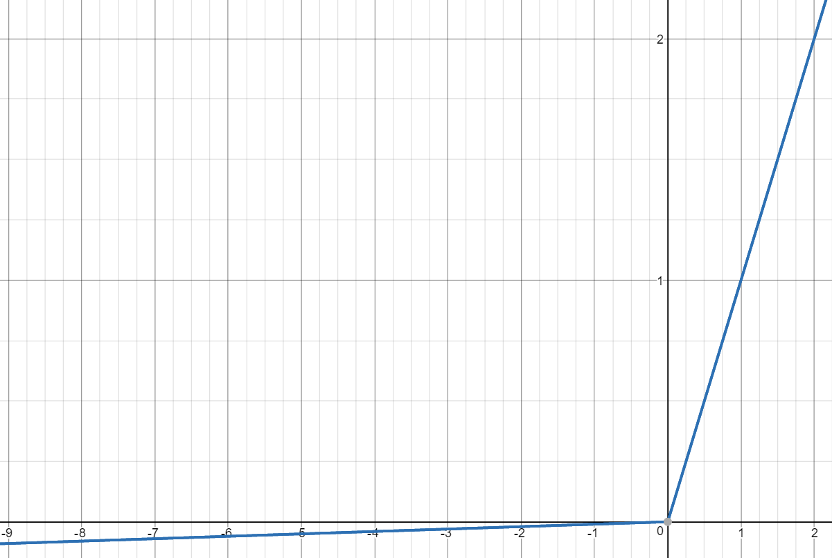 하지만, 이러한 ReLU도 하나의 문제점이 있는데 입력값이 음수이면 미분 값이 0이다보니 weight를 완전히 죽여버리게 됩니다. 이렇게 죽은 weight는 어떤 식으로든 복구를 할 수 없게되고 학습이 진행됨에 따라서 많은 weight가 죽어버릴 수 있습니다. 그렇기에 이를 해결해주기 위해서 조그만한 기울기를 가지는 선을 가지는 leaky ReLU를 사용하게 됩니다.