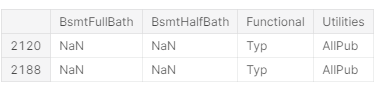 - 0.06% : BsmtFullBath, BsmtHalfBath, Functional, Utilities