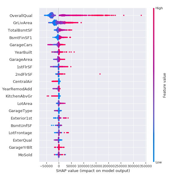 GarageCars의 경우 높은 값을 가져도 중요도가 많이 섞이는 경향이 있어보입니다. 이번 분석을 통해서 변수들에 존재하는 결측치를 채워 넣을 수 있었고 변수들 간의 상호작용과 잔차를 통한 변수의 중요도를 파악하려는 시도를 해봤습니다.