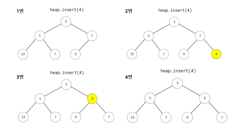 - heap.insert(4)를 통해서 4라는 값을 삽입하려고 함
