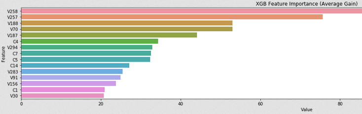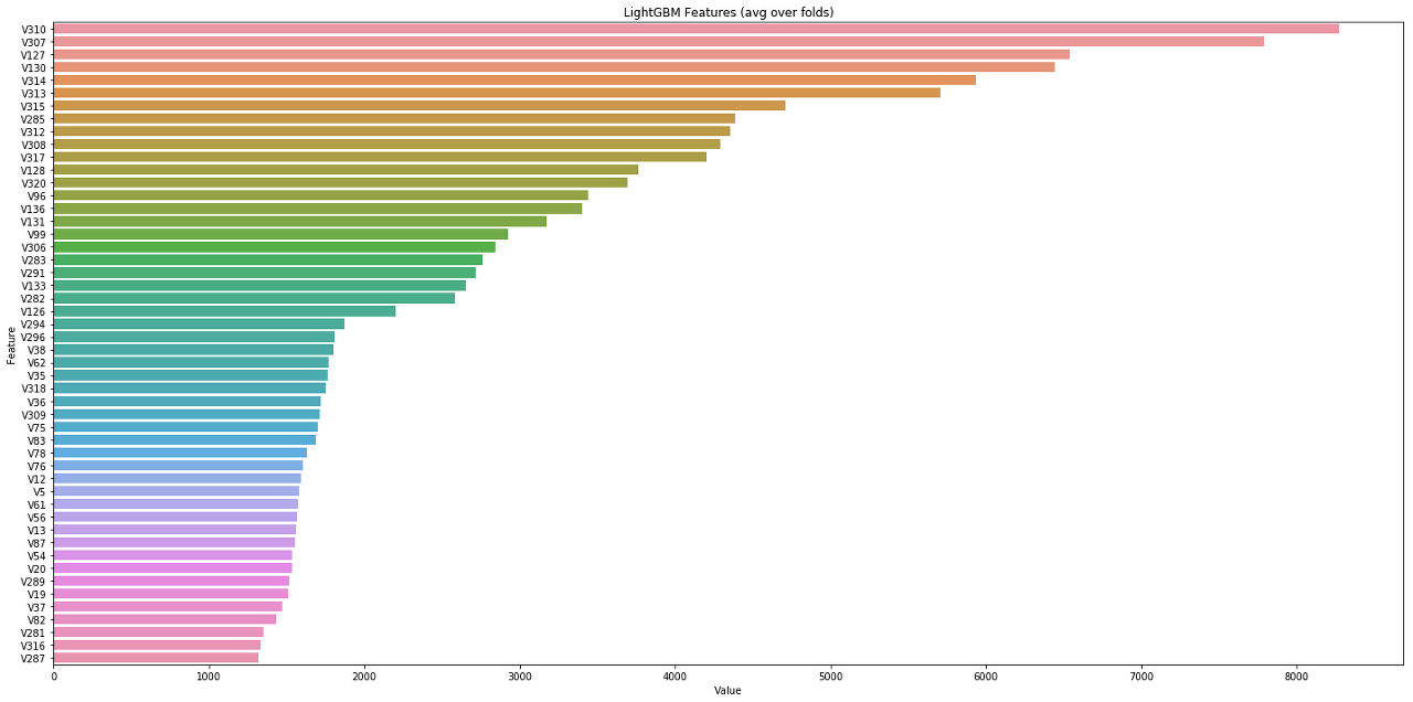 339 개의 V 열이 있습니다. 어느 쪽이 고객을 식별합니까? 다시 한 번 V 열에 대해서만 적대적 유효성 검사를 수행하고 AUC = 0.999를 얻습니다. 다음과 같은 열이 중요합니다.