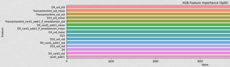이전의 콘스탄틴의 original public FE kernel은 UID가 없이 AUC = 0.924에 LB 0.9485 였다. UID를 활용한 그의 커널은 AUC = 0.9377 , public LB 0.9617 을 달성할 수 있었다. 스크립트로 UID를 생성하는 목적은 EDA와 validation tests, post process를 위함이고 모델에는 직접적으로 사용하지 않았다. 대신, 머신러닝이 사용자를 잘 발견할 수 있도록 도와주었다.