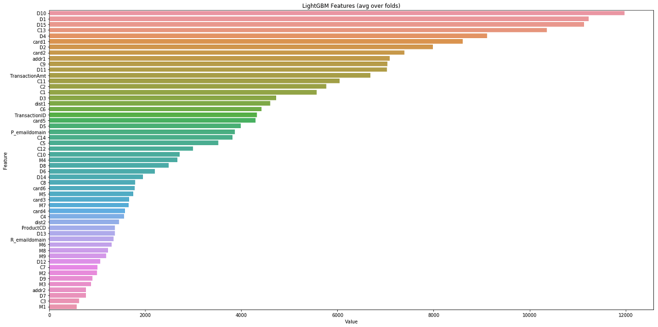 사용자를 식별하는 데 가장 중요한 열은 D10n, D1n, D15n, C13, D4n, card1, D2n, card2, addr1, TransactionAmt 및 dist1입니다. 클라이언트를 찾는 데 사용해야하는 열입니다.