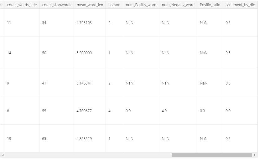 우리는 Positiv_ratio = 긍정적 단어 수 / (긍정 단어 수 + 부정 단어 수)를 정의했습니다. 비율이 0.5보다 작 으면 부정으로 분류되고 0.5보다 크면 긍정적으로 분류됩니다. 나머지를 사용하여 긍정적이거나 부정적인 단어가없는 문장을 포함하는 중립으로 분류했습니다.
