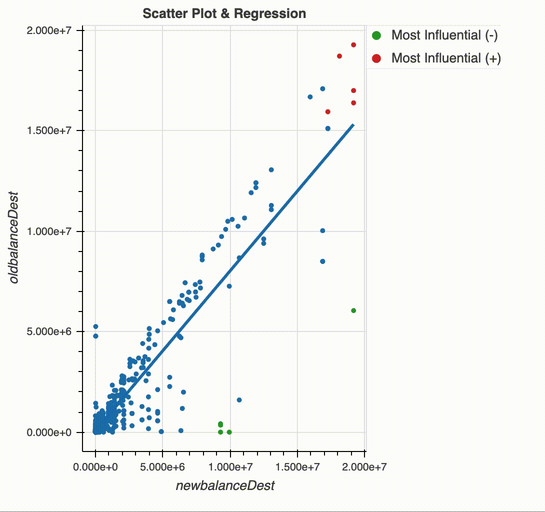 plot_correlation(df, x="newbalanceDest", y="oldbalanceDest", k=5)