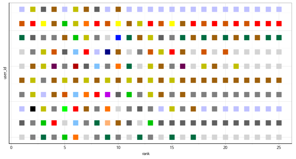 그 외의 유저들에 대해서도 카테고리의 변화가 적절히 섞인 것을 확인할 수 있습니다.