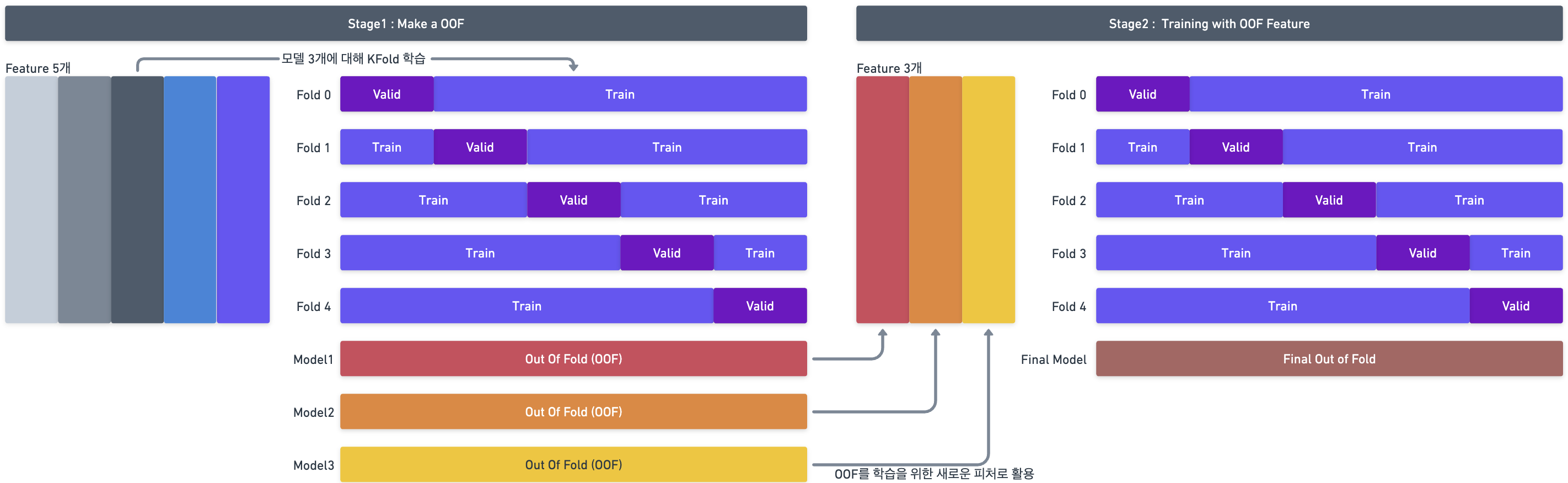 2에서 생성된 전처리된 데이터를 기반으로 학습할 모델을 선택하게 됩니다. 목적식에 따라서 Classification (분류) / Regression (회귀) 모델로 나뉠 수 있고, 모델의 학습 방식에 따라 Linear (선형) / Non-Linear (비선형) 모델로도 나뉠 수 있습니다. 그리고, 이러한 모델들의 경우 대표적으로 선형회귀 (Linear Regression) / 의사결정 나무 (Decision Tree), 최근접 이웃법 (KNN)이 있으며 Decision Tree를 개선한 Random Forest - Gradient Boosting Machine (GBM) - XGBoost - LightGBM - Catboost 등의 모델이 존재합니다. 이러한 모델들은 매우 많지만 최근 성능이 중요한 대회나 현업에서는 Boosting 모델인 LightGBM - Catboost을 많이 사용하는 경향을 보이는 것 같습니다. 하지만, 목적에 따라 해석이 중요한 경우는 Linear Regression이나 Decision Tree도 많이 사용하고 특정 대회에서는 KNN의 모델도 의미있는 결과를 보이기도했습니다. 데이터의 양이나 목적에 따라서 알고리즘의 선택이 달라지기에 해당 알고리즘을 이해하고 언제 선택할지 판단하는 능력을 기르는게 중요합니다. 후에, 이렇게 모델을 선택한 후 모델의 하이퍼 파라미터를 튜닝하는 과정이 들어갑니다. 하이퍼 파라미터는 모델의 가중치가 아닌, 모델을 학습할때 설정하는 변수들 (학습률, 학습 횟수 등)을 의미합니다. 이러한 값은 경험에 따라 Manual하게도 정하지만, 보통은 Grid Search, Random Search, Bayesian Optimization 등의 기법을 사용하기도 합니다.