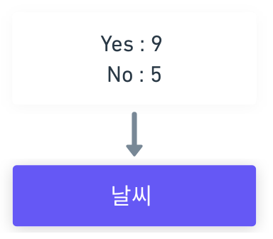 처음 날씨로 분할하기 전루트 노드로 들어가기 전의 상황을 생각해보겠습니다. 이때의 지니계수와 엔트로피의 경우는