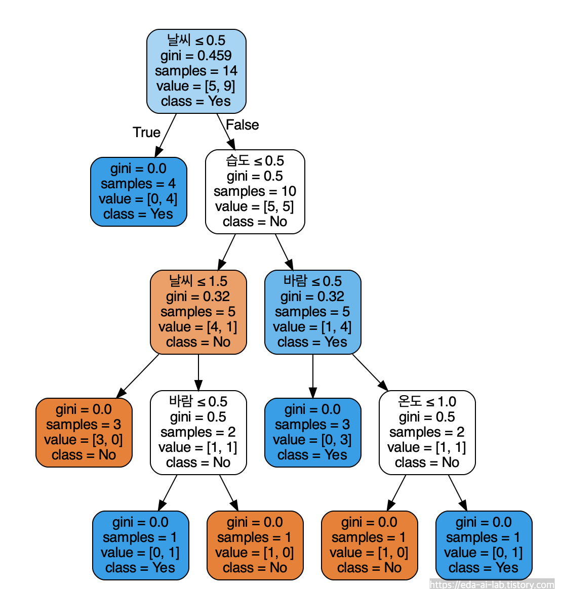 의사결정 나무의 가장 큰 장점은 학습 과정을 눈으로 확인할 수 있다는 점입니다.