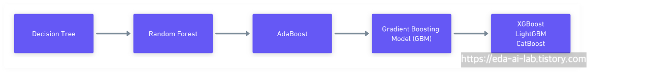 제 경험상 성능의 문제나 여러 효율성때매 현업에서는 LightGBM과 Catboost 만을 위주로 사용하지만, 해당 개념을 이해하기 위해서는 앞단의 개념들을 이해하는 것이 좋은 것 같습니다. 그렇기에, 이번 강의에서는 가장 기본이 되는 Decision Tree에 대해서 배워보고 최종적으로는 Random Forest, GBM, LightGBM, CatBoost까지 이해해보는 것을 목표로 해보겠습니다.