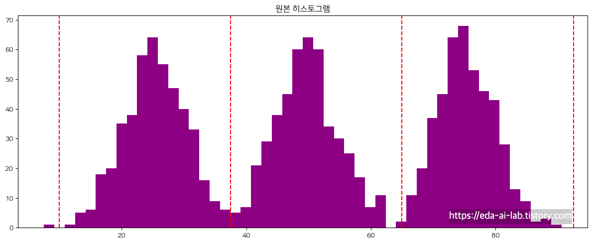위의 그래프는 3개의 정규분포를 가지는 데이터가 합쳐진 모습입니다. 해당 그래프에 binning을 적용하면 각 분포별로 같은 분포인 것을 인식시켜줄 수 있습니다.