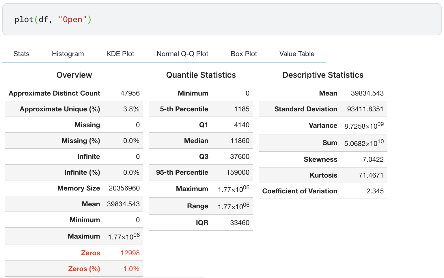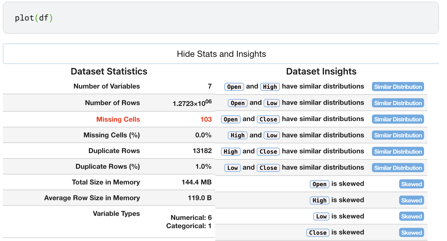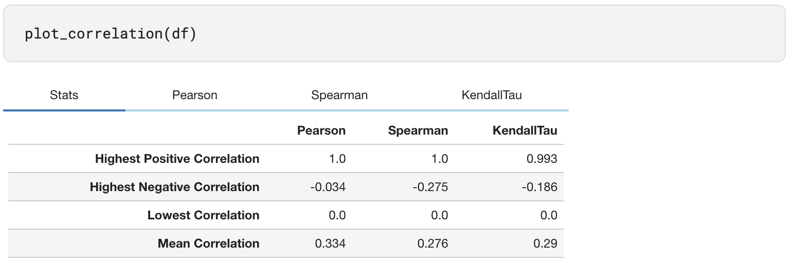 첫째, 실험을 도와주는 시도로 분석을 자동화하는 도구를 생각해볼 수 있습니다. 대표적으로 Dataprep.eda 등과 같인 EDA 자동화 툴인데 자세한 내용은 Dataprep.eda : Accelerate your EDA (EDA 자동화 패키지)의 글을 참고하시기 바랍니다. 해당 도구는 단일 변수의 분석, 변수들간의 관계 분석, 결측치 분석을 도와줍니다. 실제, 예시 데이터로 진행 과정을 보면