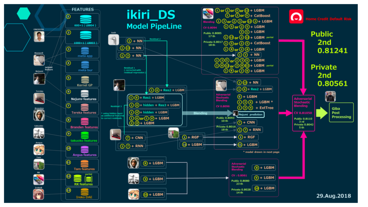 캐글에서는 이러한 앙상블을 위와 같이 전처리, 파생변수, 모델 등 다양한 측면에서 다양성을 만들어서 수행합니다. 실제 아래와 같이 혼자하기에는 어려움이 있지만, 여러 사람이 같이 작업을 했을때 좋은 시너지를 내기엔 앙상블만한 방법이 없는 것 같습니다.